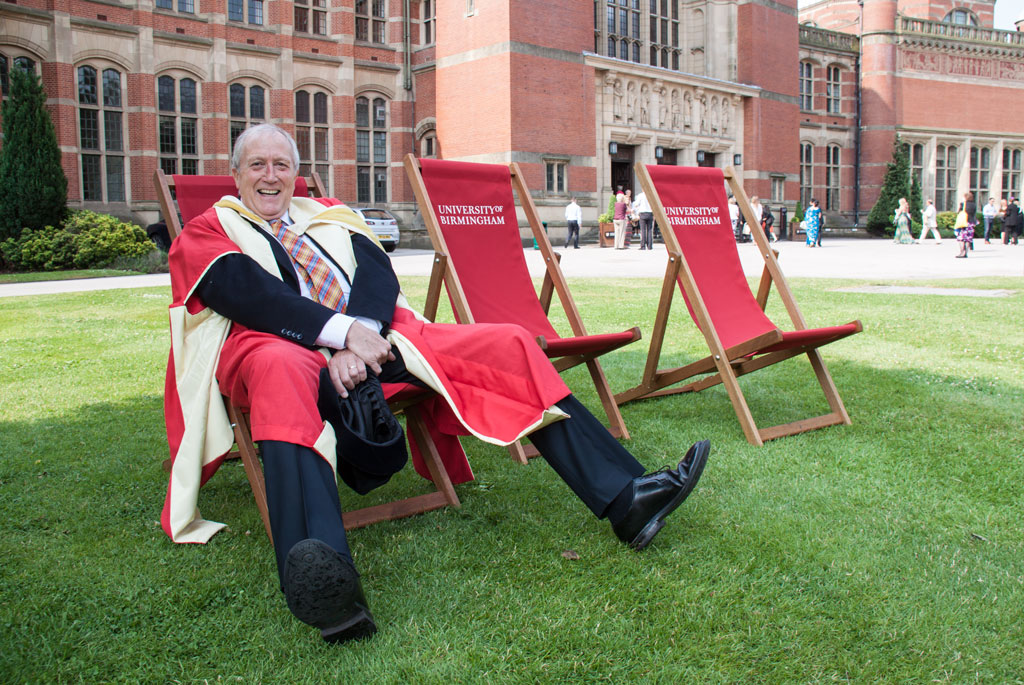 It was deckchairs on the lawns around Chancellor’s Court and a special order of sun all day revealed the campus in its full glory. Many people took the opportunity to enjoy the sun before it was time to for our graduands from the School of Dentistry to make their way to the Great Hall. The staff looked resplendent in their robes and there was the personal touch as Professor Lumley announced the names of the graduands before they shook hands with the Chancellor Sir Dominic Cadbury. The honorary graduand was Kay Alexander from BBC West Midlands who delivered an inspiring speech following the conferment of her honorary degree.