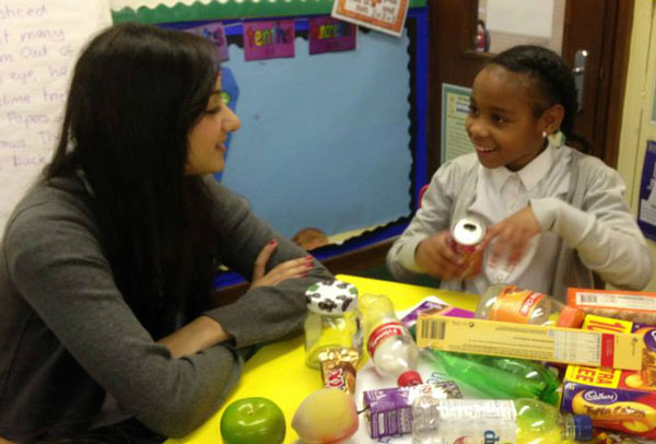 The children were extremely enthusiastic and intrigued by the numerous props and models we had displayed across the classrooms. We demonstrated tooth brushing techniques using videos and over-sized models of jaws and toothbrushes. At the next station, the children were asked to sort foods and drinks into a good and bad pile and asked to justify their choices; the message of hidden sugars was strongly reinforced. On the tooth anatomy station, the children were educated on the structure of teeth and the uses of each type of tooth. Finally we had a station which simulated ‘A day at the dentist’. This station was a hit! Here, the pupils eagerly dressed as dentists and patients and familiarized themselves with the different instruments and materials used.