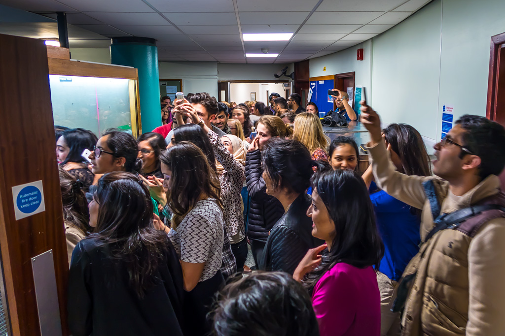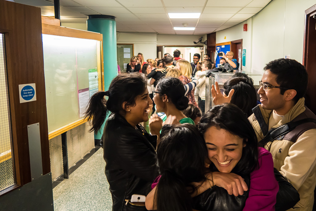 The students erupted and the noise was deafening. Phones were used as video cameras, for calling home, sending text messages or even for the happiest selfie in the world.