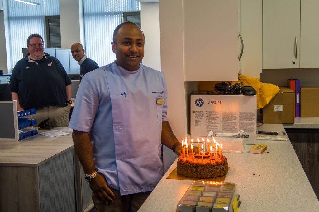 It has been a time of birthday celebrations for Kris Coomar and Mel Grant.  We can see the difference in birthday venues.  Mel celebrated her 40th in the old building (3rd floor lecture theatre) for those who can not remember.  It was just before we moved.  Kris was the first member of staff to celebrate their birthday in the new School of Dentistry Office Area.  We had the area specially designed for such occasions 🙂  Congratulations to both of them.