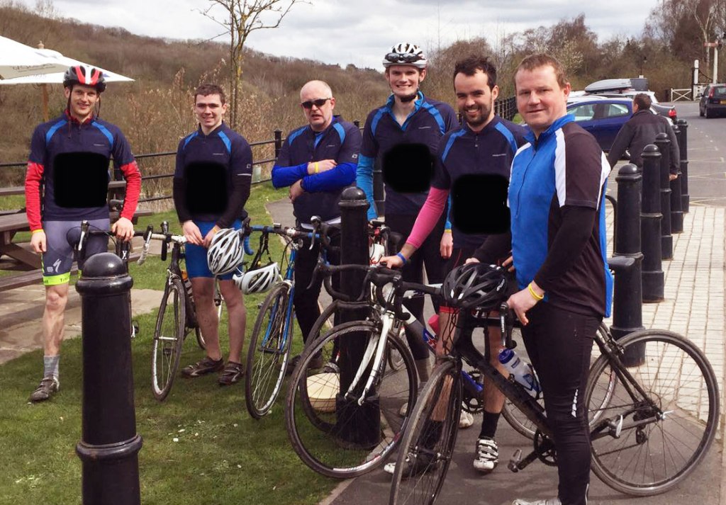 Chris Beech (C.Gull), Jack Livesey (Grit Box), Will Madden (Virg), Richard Aykroyd (Dick), Nick Adams (Ladams) had a planned early start from The Black Swan in Coalport to take part in the mixed off road/on road 92 km ride around East Shropshire (Ladams territory). Prof Dietrich turned up unplanned (and unlabelled) on his lightweight road bike with slik tyres. Shortly after the start we rode past the Ironbridge. Taking Team Sky’s principle of “Aggregation of marginal gains” to the extreme in an attempt to reduce weight, Prof claimed to have forgotten his crash hat. Next up, the most onerous task of the day: transportation of the Endobelly up the climb of the Severn Gorge. Not easy …. but if Abraham Darby could get heavy weights up the Gorge, then so could we. We regrouped at the pub in Little Wenlock, disappointed it was shut at 9.15 in the morning. Ed, Nick Adams’ son joined us shortly after. Again using the “aggregation of marginal gains”, Ed increased the weight Prof had to carry, useful for the off road sections and also affording protection to the professorial bonce. We passes another local sight, the Roman Vineyard, sadly non productive. We were soon onto the first off road section – here, the extra weight, downforce and traction afforded by the Ladams fat tyres and midriff came in incredibly useful allowing good progress in a straight line ….. unlike those on light bikes and thin tyres…. On rejoining the road we were treated to the amusing sight of Ed on the front of the group burning his Dad off – needless to say the rest of us kept up. We regrouped at Newport – lost…. the penalty for leaving the local knowledge behind. However, Ladams local knowledge got us back on track and there followed a mix of undulating road and flattish off road riding. The off road sections were interesting as someone, who is not English, was making rather a lot of well known English phrases as the lighter bikes were going in all directions on the mud, including perpendicular to the desired line of travel. Off road, fat tyres, fat midriff: no probs. Near misses ensued but crashes avoided – just. Only one of us fell off (but we won’t say who)