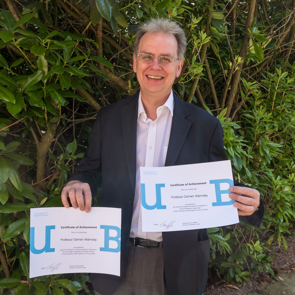 Professor Walmsley was doubly successful at the 2016 Excellence in Postgraduate Supervision Awards. These awards recognise and reward outstanding supervision of doctoral researchers. As a research-intensive university, Birmingham is committed to carrying out research that is world-leading in terms of its originality and distinctiveness, significance and rigour. The awards recognise the significant contribution made by academic supervisors to the successful completion of high-class doctoral research at the University. Prof Walmsley won the award for the College of Medicine and Dental Sciences. He was also awarded a lifetime achievement award from the University of Birmingham for his outstanding contribution to the supervision of doctoral students.