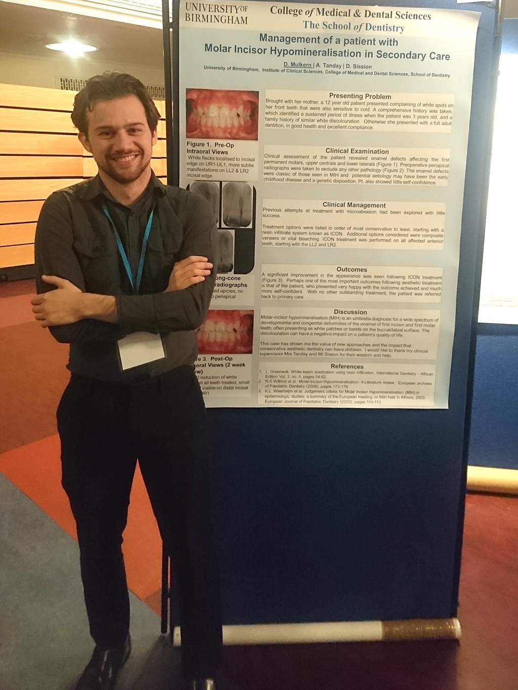 Christie Grove presented her management of a non-vital immature central incisor, delegates were impressed by her clinical care. Dimitri Mulkern gave a confident presentation on the management of a child with enamel defects. Judges were amazed by his in-depth knowledge of the management of this patient and the materials used. We are delighted to announce Dimitri won an Undergraduate Poster Prize.