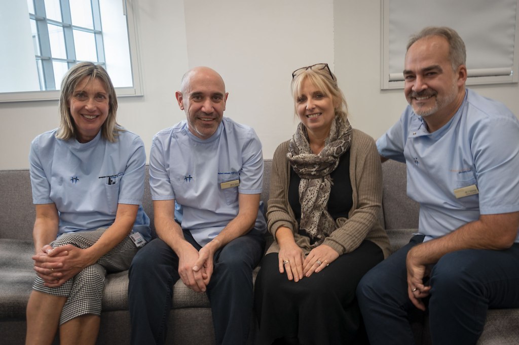 The picture shows Jane with fellow part-time teachers Penny White, Paul Carroll and Tim Eldridge.