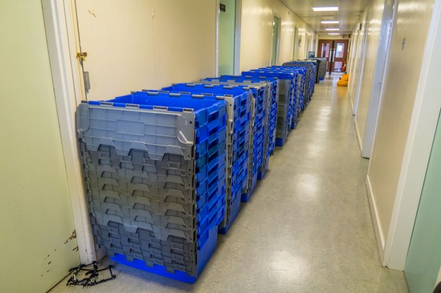 More activity as the laboratory work on 6 East is carefully packed and ready to move.