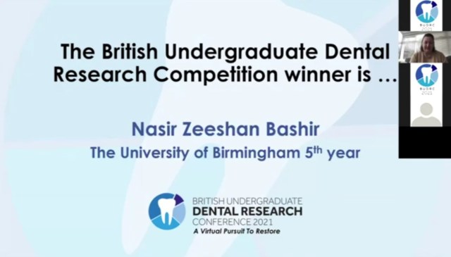Congratulations to one of our final year students, Nasir Zeeshan Bashir, who has won the British Undergraduate Dental Research Prize. His presentation was entitled ‘Artificial neural networks to develop and validate multivariate predictive models for […]