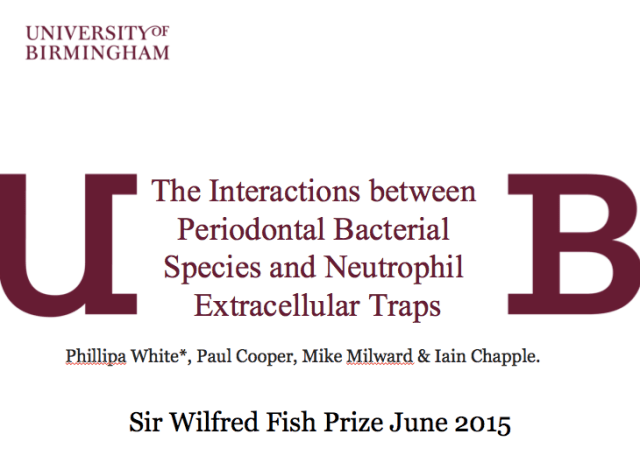 Phillipa White in the Periodontal Research Group has won the Sir Wilfred Fish Prize at the Presidential British Society for Periodontology meeting in June 2015. The Sir Wilfred Fish Research Prize, instituted in 1970, is […]